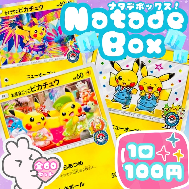 ご購入いただいた皆様に拡張パックを1パックお付けします❀.(*´▽`*)❀. 拡張パックはスカーレット&バイオレット以降のものが中心ですが、一部ソード&シールドのパックもございます。ハイクラスパックも少数ご用意がございますが、基本的にはおまけですので過度な期待はしないでくださいね(⋆ᴗ͈ˬᴗ͈)” 〜ナタデココオリパ 2026 vol.15〜 ◆ナタデボックス◆ ポケモンカード 1口110円(税込)オリパ ・30口を1セットとして販売(110円×30口=3,300円) ・1口2枚入り 全1800口 合計60セット ・送料は一律250円(ゆうパケット) ・1回の購入制限お一人様1セットまで(追加購入も大歓迎です⭕️) ■開封の楽しみ方■\_(・ω・`)ココ重要! 当たりは全て同じ向きに入っています。 当たりの入っている面を手前にしてお持ちいただき、 奥側のカードから順に見ていただけたら幸いです。 ※商品説明の画像を合わせてご覧くださいませ! 当たりは基本エネルギーカードとペアにしてありますo'ᆺ'o エネルギーカードが出たら心の準備をお忘れなくΣ(。>艸<。) ☆大当たり☆ ・お茶会ごっこピカチュウ【P】{325/SM-P} ・漫才ごっこピカチュウ【P】{407/SM-P} ・カナザワのピカチュウ【P】{144/S-P} ○小当たり○ ・SR・HR・UR・SSR・CSR・CHR・AR・RRなどなど… ※現行レギュレーション以前のカードも含みます(´>∀<`)ゝ ⭐️ご注意⭐️ <カードの内容について> 公式さんのBOXをイメージしてお作りしていますが、封入に偏りがある場合もございます( ´•ᴗ•ก) <カードの状態について> 状態許容範囲・・・A、A-、B ❤️グレーディングについて❤️ 状態A・・・美品 状態A-・・・やや傷や汚れあり 状態B・・・傷や汚れあり ※詳細はこちら\_( '-' ) https://natadecoco.pokemon-card.shop/p/00001 ナタデボックスは状態の許容範囲が広めです。 当たり枠も含め、一律プレイ用のアウトレットオリパとお考えくださいませ。 そのため、カードの状態での返品等の対応は出来かねてしまいます。 なにとぞご了承のほど、よろしくお願いいたします。 今後の商品作りに活かしていきたいと思っておりますので、レビューにて傷の状態について皆さんのご意見お聞かせいただけたら嬉しいです! <発送・支払方法について> 基本的にご注文後、3~4日以内に発送させていただきます❣️ 発送後の事故は保証できません( ´•̥ω•̥`) コンビニ払いにも対応できるようになりました((⊂(。`・ω・´。)⊃))バーン <最後に> 日頃みなさんから買取させて頂いたカードも入っています❣️ 綺麗なカードをありがとうございます☺️ レビュー・開封ポストのご協力ありがとうございます❣️ 開封ポストの際は#ナタコレを付けていただけたら嬉しいです(o・ω-人) ご不明点ございましたらお気軽にお問い合わせください。 お問合せはコチラから\_( '-' ) < E-mail > ショップ情報 ⏩ ショップへのお問い合わせ ⏩ Eメール送信 < Twitter > @natadecoco_shop ⏩ DM送信 ⭐️古物商許可情報⭐️ 千葉県公安委員会 許可証の番号:第441120001326号